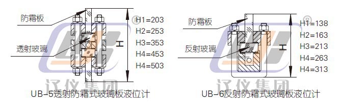 ●UB-6反射防霜式玻璃板液位計(jì)用于測(cè)量因低溫?zé)o色透明介質(zhì)造成外表凝霜場(chǎng)合的液位