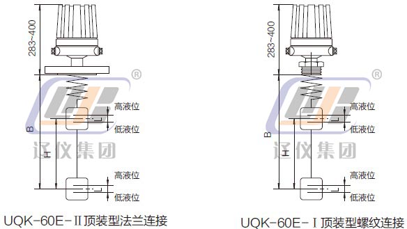 UQK-60E頂裝浮子(球)液位開關(guān)基于浮力原理是以浮子為感應(yīng)元件,兩浮子同時懸掛一根鋼絲繩上,即彈簧被重于液體的浮子加載,浮子沉沒在液體里時浮力產(chǎn)生變化,致使彈簧向上位移。